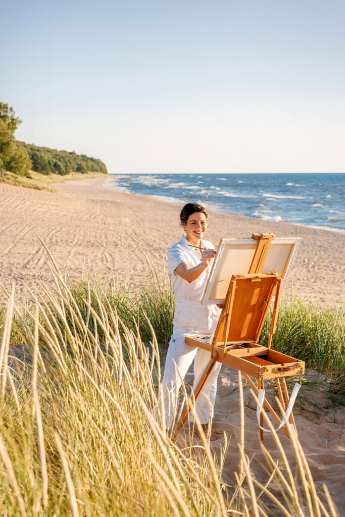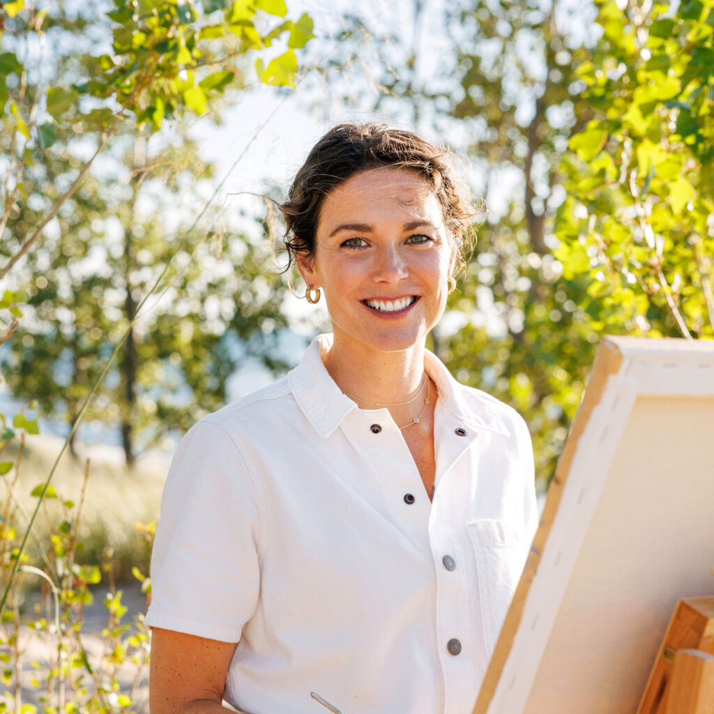 Bryanna Manning is a West Michigan–based painter inspired by the natural world and the Great Lakes. Living in the woods near Lake Michigan, and drawing inspiration from her family cottage in Northern Michigan, she seeks to capture the magic of childhood summers spent at the shore—capturing the sense that anything is possible, that the natural world is good, and that beauty surrounds us.