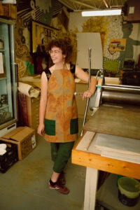 Ink & Pressure This exhibit is a textile showcase by a self taught artist featuring linen tapestries, pillows, and paper collage. Each textile piece is