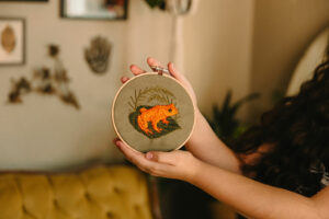 Resilience During Quarantine The Exhibit the exhibit This exhibit is a textile showcase by a self taught artist featuring linen tapestries, pillows, and paper collage.
