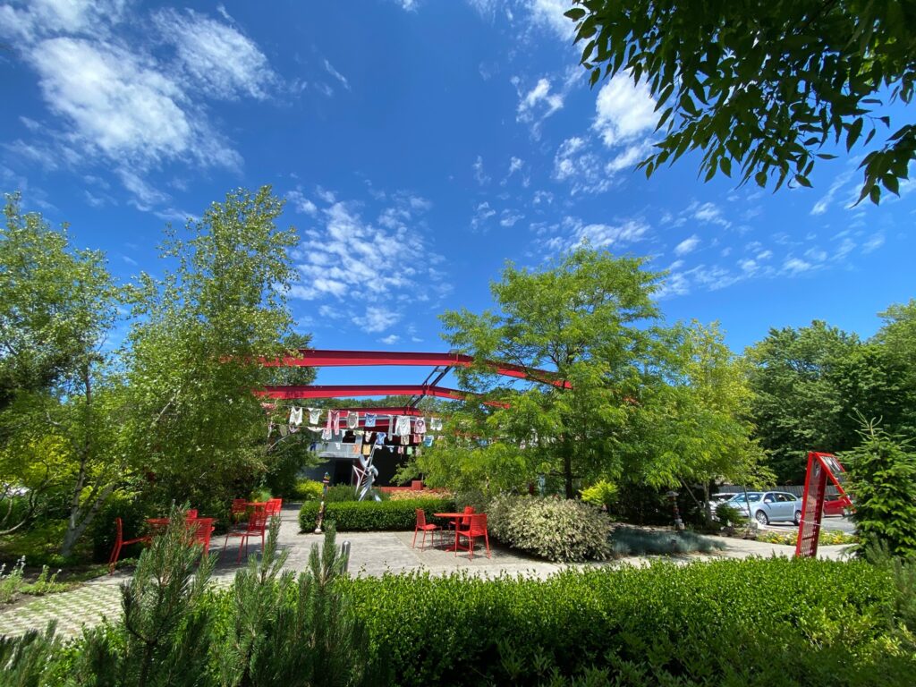 From there, red row boats float through the garden, prompting viewers to begin their journey exploring our creative community. Waves of bottles and greenery follow the row boats, blending the world of water into the world on land.